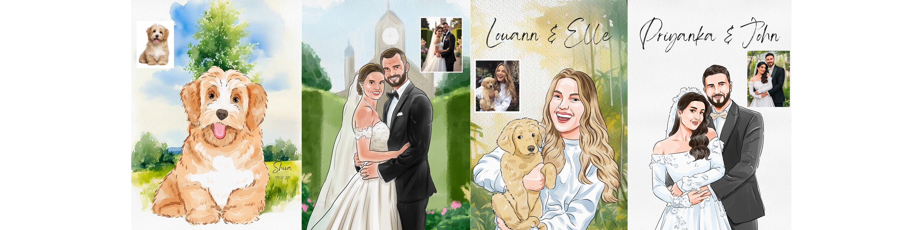Custom Digital Watercolor Portrait | Couple, Family & Pets |